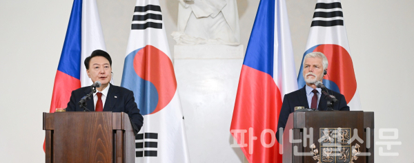 윤 대통령은 이날 체코 프라하에서 가진 정상회담 후 공동기자회견에서 "내년 대한민국과 체코공화국의 수교 35주년을 앞두고, 유럽 내 한국의 핵심 우방국인 체코공화국을 공식 방문하게 돼서 대단히 기쁘게 생각한다"며 "유럽에서 철의 장막이 무너진 직후 1990년 외교관계를 수립한 한국과 체코는 빠른 속도로 호혜적인 협력을 확대해 왔다"고 말했다.