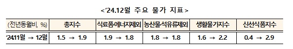 2024년 연간 소비자물가는 2.3%, 근원물가는 2.2% 상승