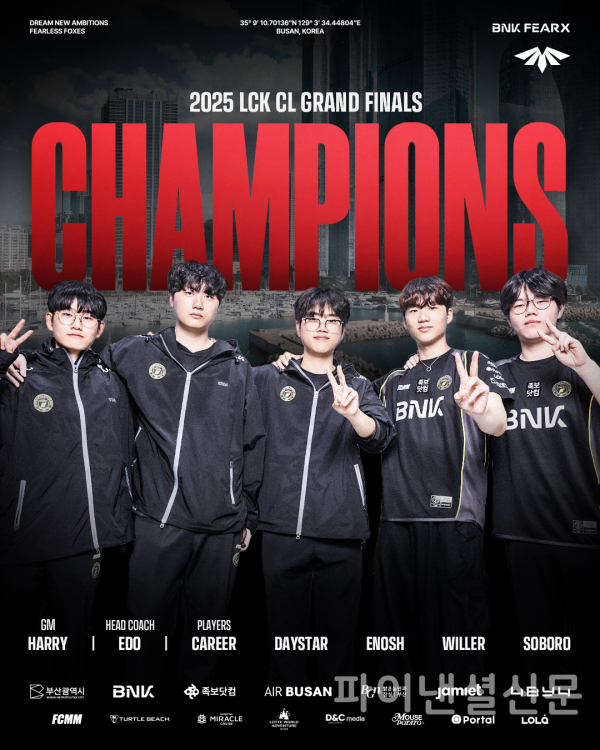 BNK FEARX는 지난 9월 리그 오브 레전드 공식 2군 리그인 ‘2025 LCK 챌린저스 리그(CL)’에서 창단 첫 우승을 달성했다. 정규 시즌 4위에서 출발해 패자조에서 반전을 일궈낸 BNK 유스팀은 ‘젠지 글로벌 아카데미’, ‘DRX 챌린저스’, ‘T1 아카데미’, ‘KT 챌린저스’를 차례로 꺾으며 이른바 ‘미라클 런’을 완성했다. 결승전 MVP는 서포터 ‘커리어’ 오형석이 차지했다.