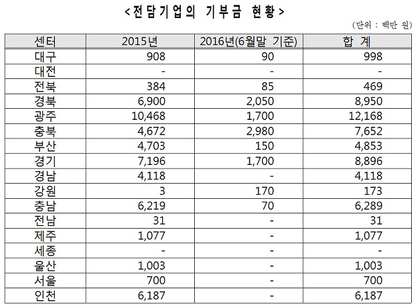 당초 운영과 관련한 비용은 지자체와 경제단체, 중앙정부가 매칭된 펀드 방식으로 조달하기로 했지만, 실제로는 전담 대기업으로부터 기부금을 지원받는 방식으로 운영되고 있다는 것이다.
