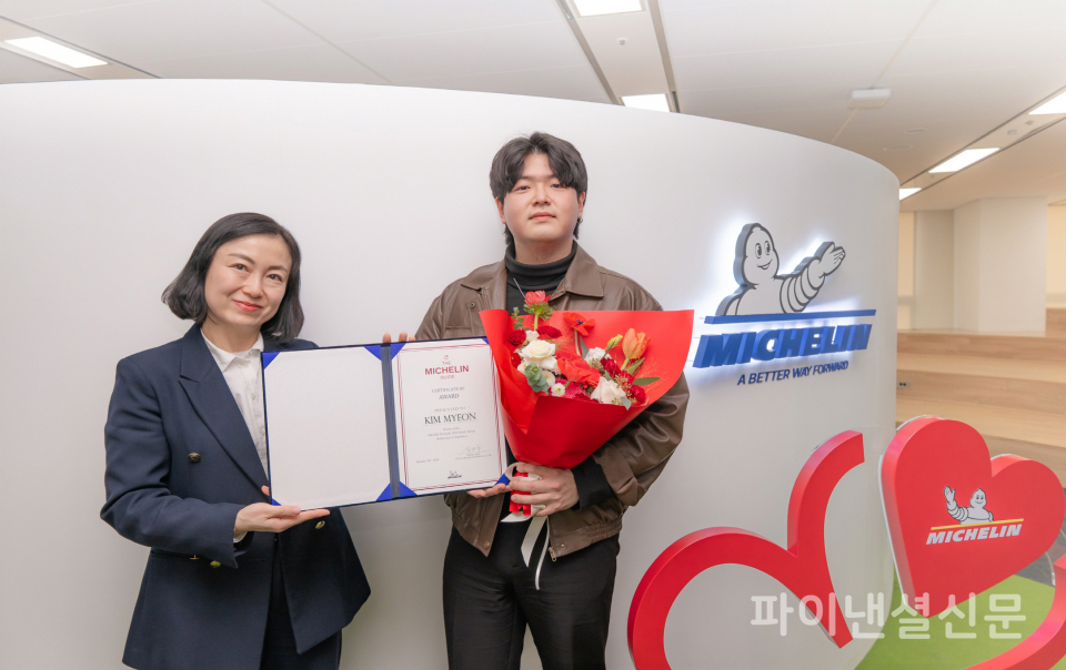 (왼쪽부터) 미쉐린코리아 대표 미셸 주(Michelle Zhu)와 최종 당선작 수상자 김면 학생이 기념사진을 촬영하고 있다. (사진=미쉐린코리아)